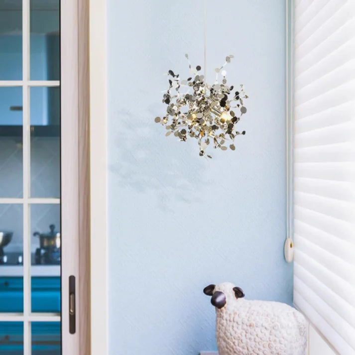 Diese Pendelleuchte hat ein einzigartiges Design. Die unregelmäßige Blattform verleiht ihr eine starke künstlerische Atmosphäre und Modernität und zieht die Aufmerksamkeit der Menschen auf sich.