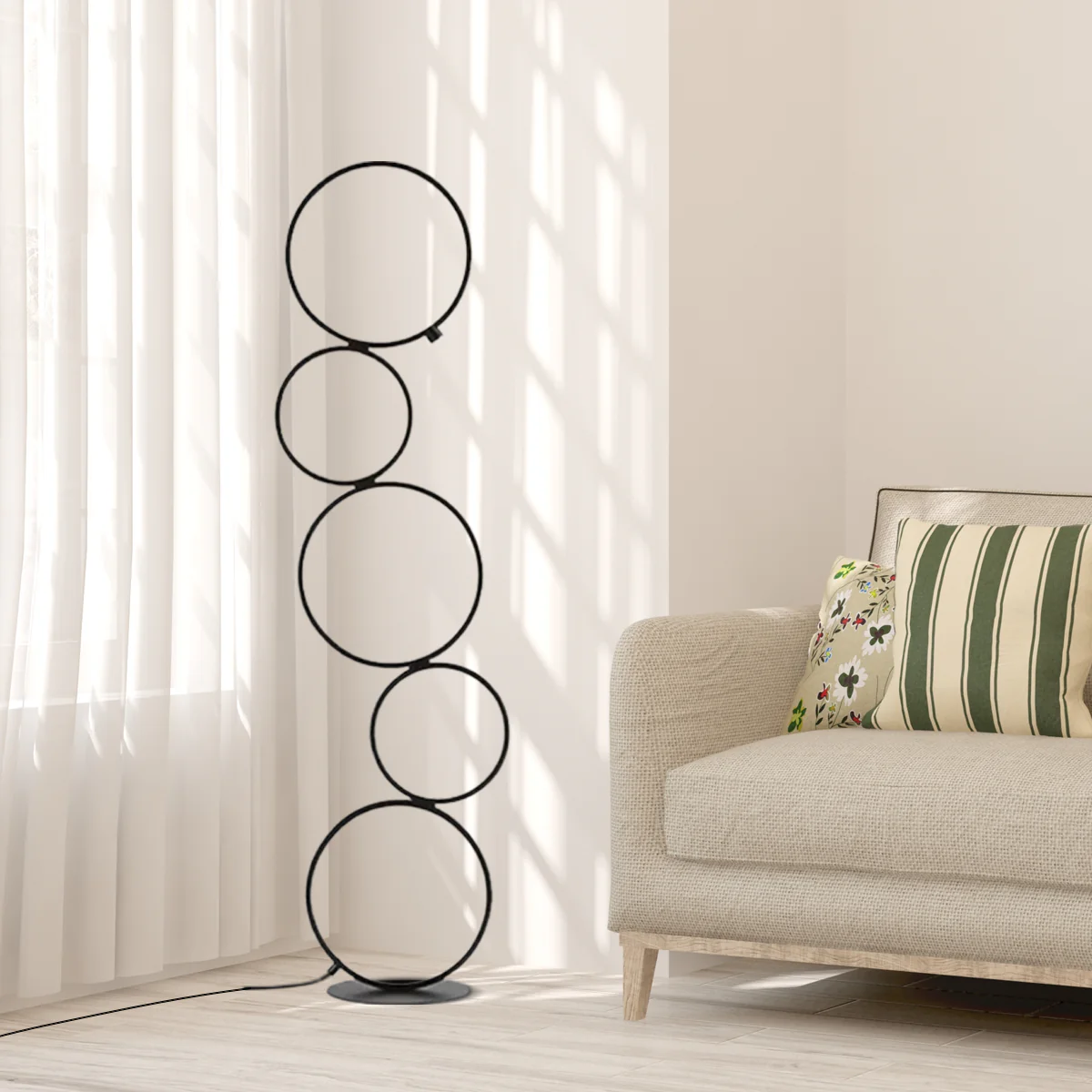 Tipp: Nutze die Eleganz und den visuellen Kontrast einer schwarzen Stehlampe, um deinem Wohnzimmer eine persönliche Note zu verleihen.