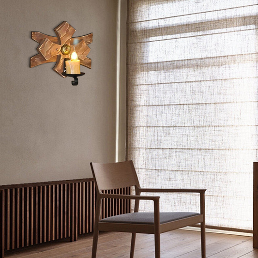 Industrielle Wandleuchte Braun Metall Holz Kerze Laterne Wohnzimmer