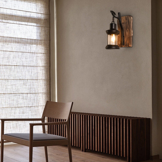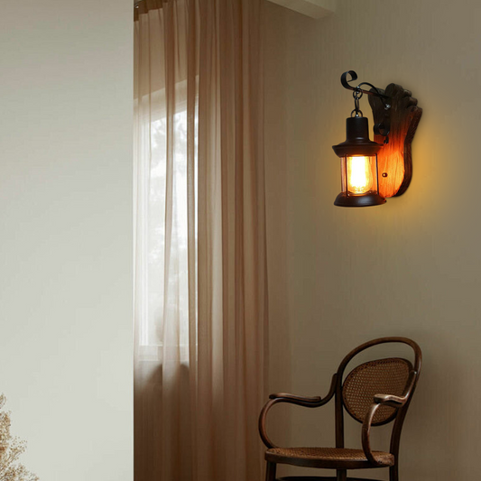 Vintage Wandleuchte Schwarz Metall Holz Zweig Laterne Schlafzimmer