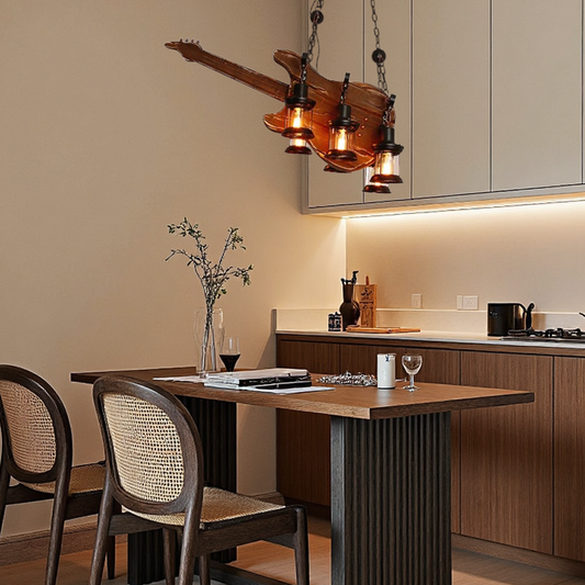 Vintage Braun Pendelleuchte Metall Holz Gitarre Esszimmer