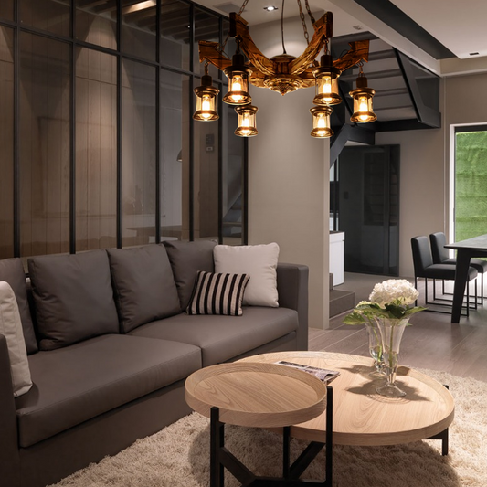 Vintage Pendelleuchte LED Walnuss Metall Holz Esszimmer