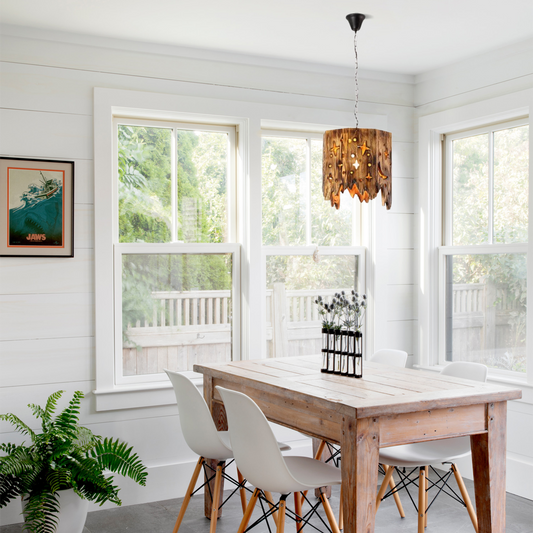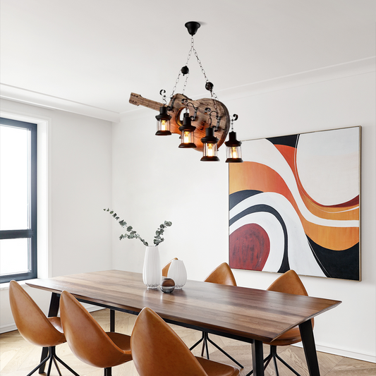 Vintage Pendelleuchte Schwarz Metall Holz Uneben Burlywood Esszimmer