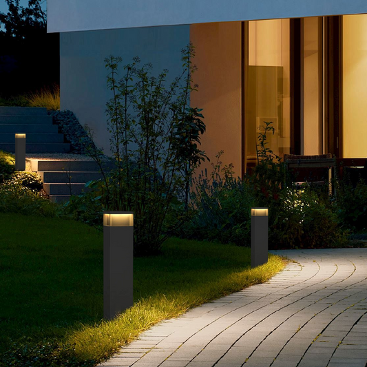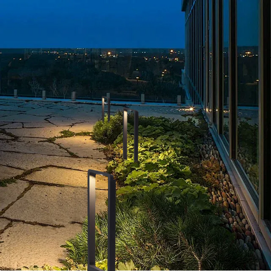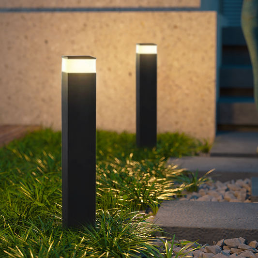 Minimalistische Außenwegeleuchte/Stehleuchte LED Rechteckig Schwarz Metall Garten/Hof/Teresse