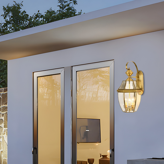 Vintage Wandleuchte LED Latern Gold Glas/Metall Außen/Garten/Hof
