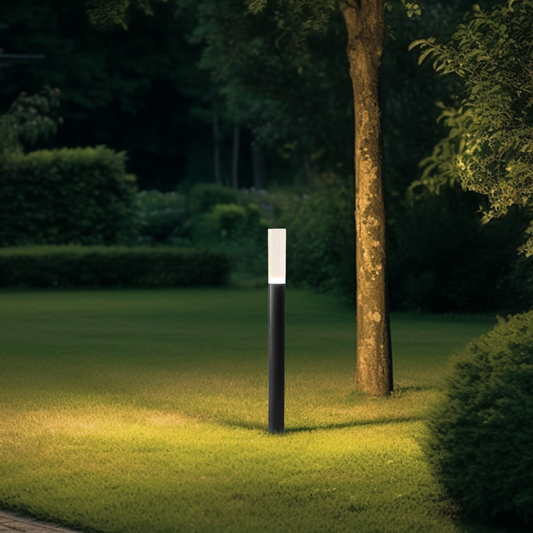 Minimalistische Wegeleuchte Schwarz Metall Acryl Zylindrisch Außenbereich