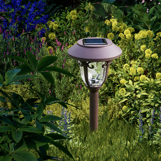 Art Deco Außenstehleuchte LED Blume Glas Silber Solar Garten