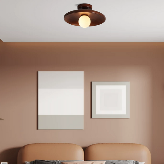Nordic Deckenleuchte LED Frisbee Holz/Glas Walnussfarbe Schlafzimmer