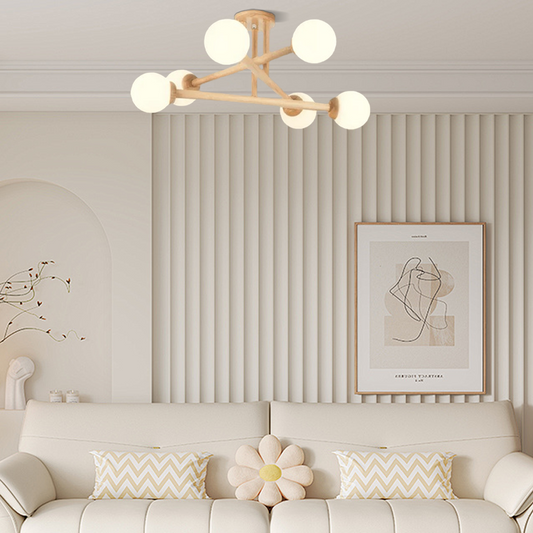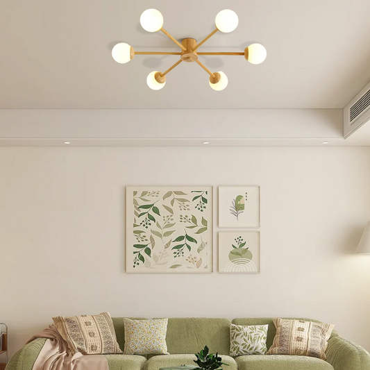 Nordic Deckenleuchte LED Holz/Glas Wohnzimmer