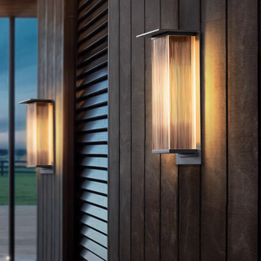 Industrielle Wandleuchten mit robustem Metallgehäuse und sichtbaren Schrauben – ideal für urbane Lofts oder Bars.