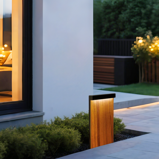 Moderne Außenleuchte LED Rechteckige Holz/Metall Schwarz Garten