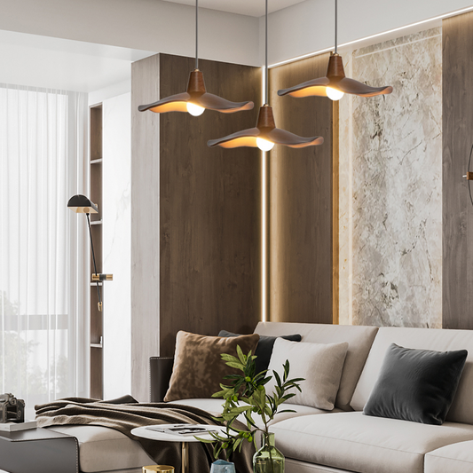 Moderne Pendelleuchte Braun Holz Rechteckig Wohnzimmer