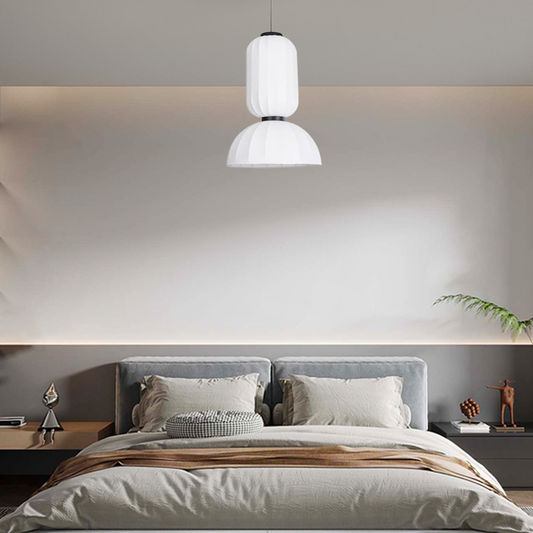 Nordic Pendelleuchte LED Laterne Weiß Stoff Wohnzimmer