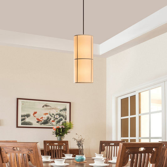 Modern Pendelleuchte LED Zylindrisch Weiß Stoff Wohnzimmer
