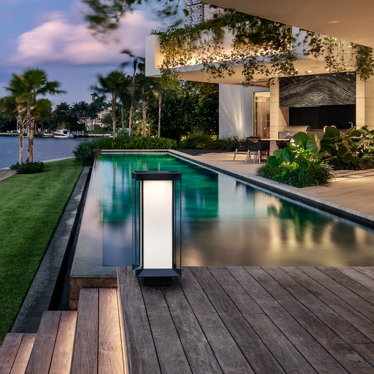 Moderne Außenstehleuchte LED Rechteckig Schwarz Glas Solar Garten/Terrasse