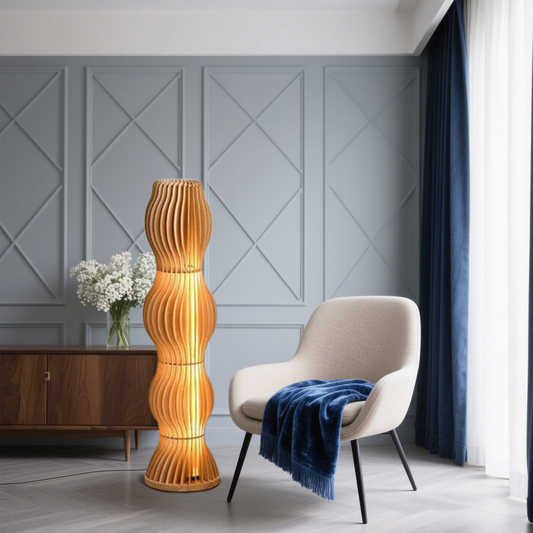 Nordic Stehlampe LED Holz Zylindrisch Wohnzimmer