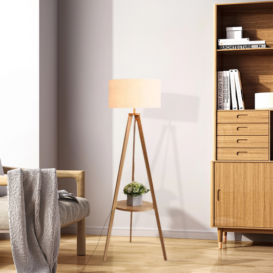 Nordic Stehlampe LED Triangle Beige Holz/Stoff Wohnzimmer