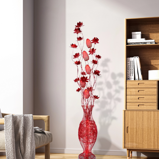 Art Deco Stehleuchte LED Blumenvase Rot Metall Wohnzimmer