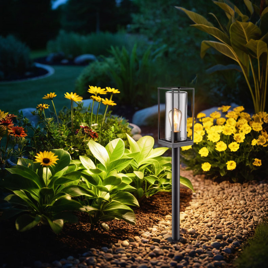 Modern Außenstehleuchte LED Rechteckig Schwarz Solar Metall Garten