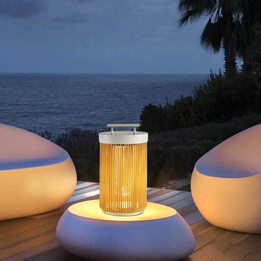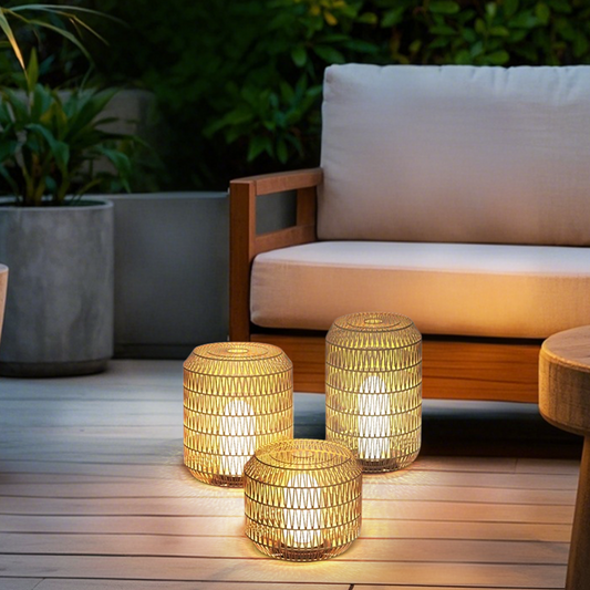 Landhausstil Außenstehleuchte LED Zylindrisch Khaki Rattan Solar Garten