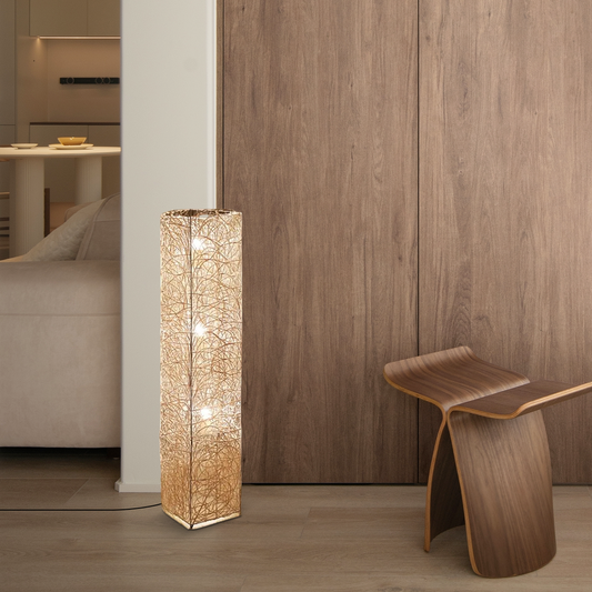 Minimalistische Stehlampe Gold Holz Linear Schlafzimmer