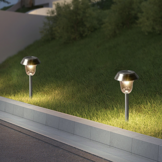 Modern Außenstehleuchte LED Schüssel Metall Silber Solar Garten