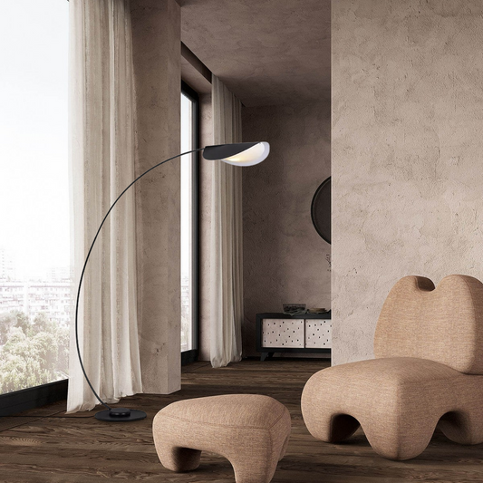 Moderne Stehlampe Schwarz Metall Gewölbt Wohnzimmer