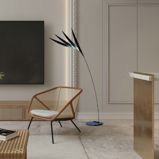 Minimalistisch Stehleuchte LED Federleicht Metall Schwarz Wohnzimmer