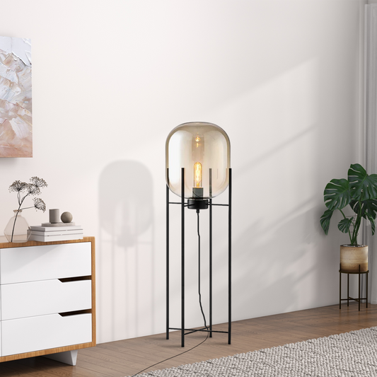 Moderne Stehleuchte Schwarz Metall Glas Geradlinig Schlafzimmer