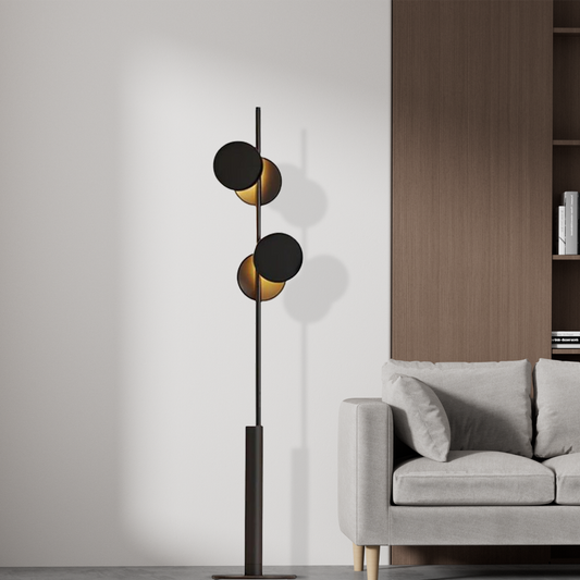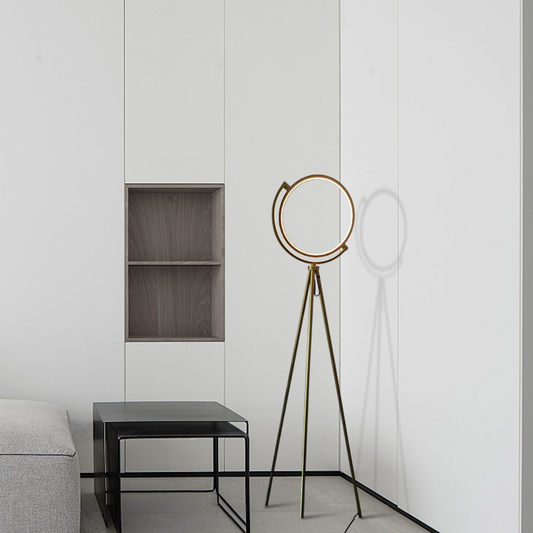 Moderne Stehleuchte Schwarz/Gold Metall Ringförmige Wohnzimmer