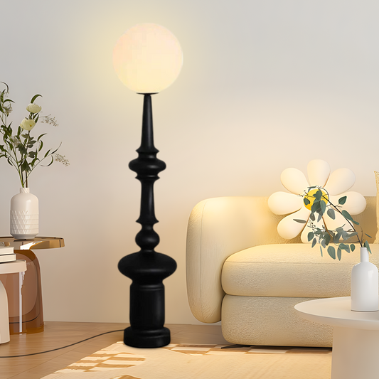 Retro Stehleuchte LED Kugel Schwarz Resin Wohnzimmer