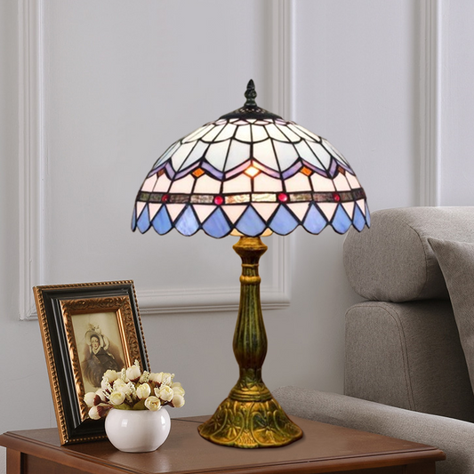 Art Deco Tischlampe Bunt Metall Glas Kuppel Schlafzimmer