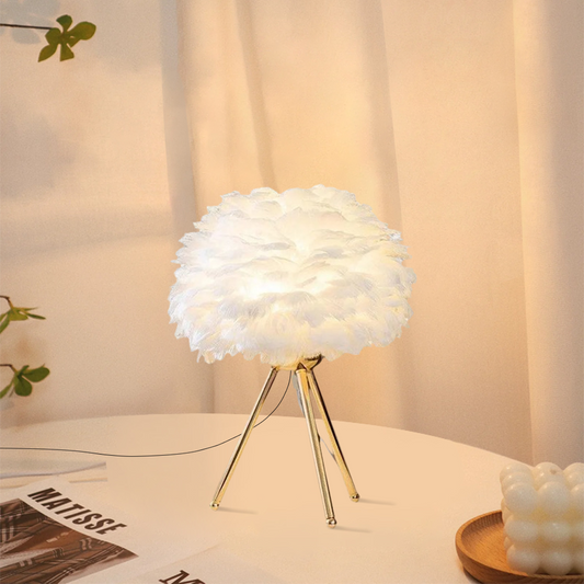 Art Deco Tischlampe LED Metall/Feder Weiß Schlafzimmer