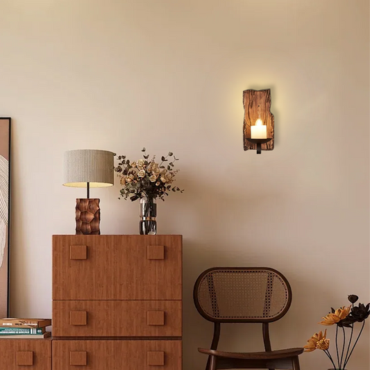 Vintage Wandleuchte Holz Metall Holz Rechteckig Kerze Wohnzimmer