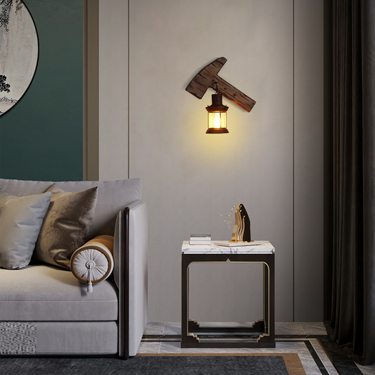 Vintage Wandlampe Holz Metall Holz Laterne Wohnzimmer