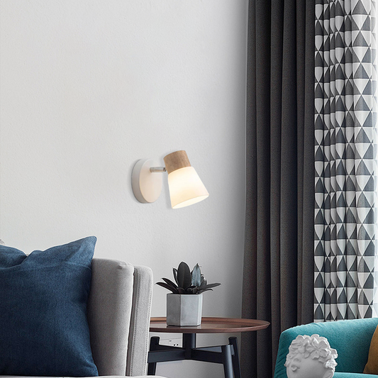 Nordic Wandlampe LED Holz Glas Kappenförmig Weiß Bade/Schlafzimmer