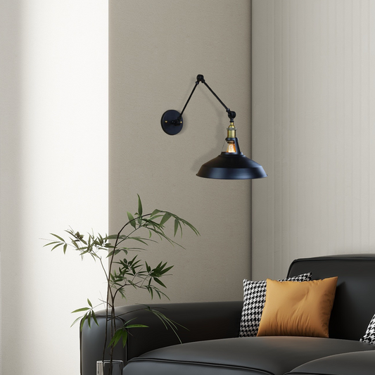 Industriell Wandleuchte Kappenförmig Schwarz Metall Wohnzimmer