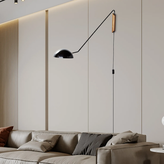 Nordic Wandleuchte LED Kuppel Schwarz Holz/Metall Wohnzimmer