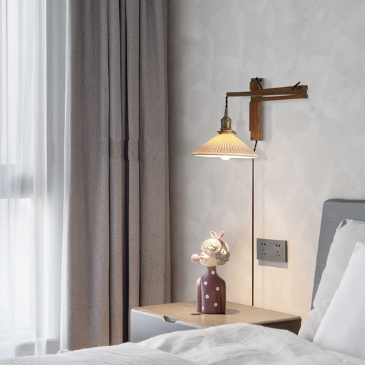 Vintage Wandlampe LED Holz Konisch Walnussfarbe Treppenhaus