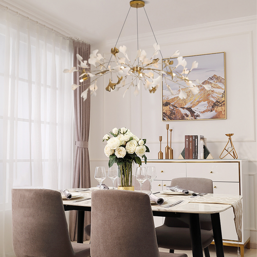 Diese romantische Ginkgo-Kronleuchter passt für Wohnräume. Sie vermittelt Eleganz und steigert den Raumwert.