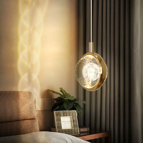 Monika Fiedler Kronleuchter mit goldenem Anhänger.Ein Produkt, sehr schön und elegant, leider fiel beim Öffnen der Verpackung die Glühbirne und das Glas zu Boden und zerbrach.