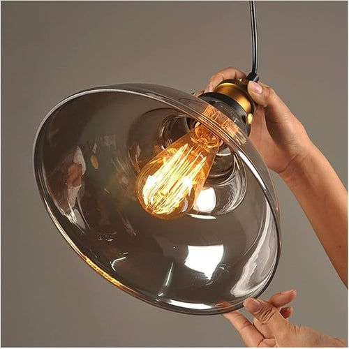 Die Leuchten besteht aus langlebigem Glas und Metall, dessen klarer Glasschirm ein warmes, einladendes Licht verbreitet.