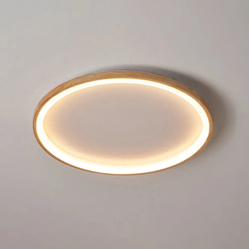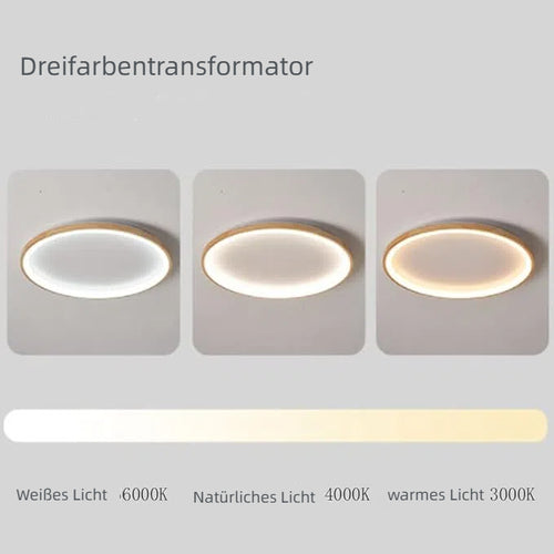 Einfache, runde Form mit gleichmäßiger LED-Beleuchtung und natürlichem Holztouch.