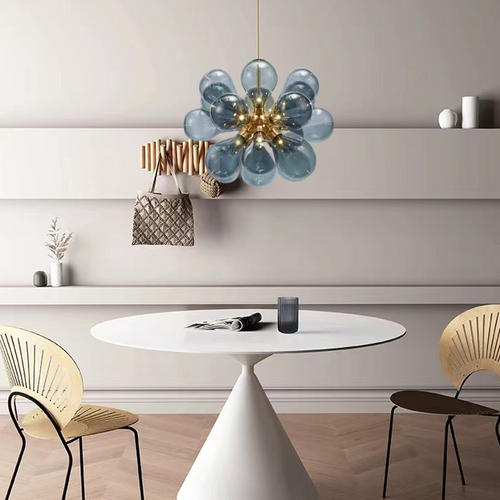 Diese blaue Pendelleuchte besticht mit ihrem zeitgemäßen Look und hoher Stilfülle.