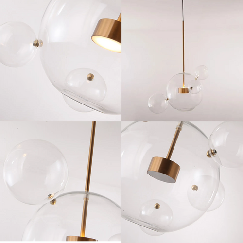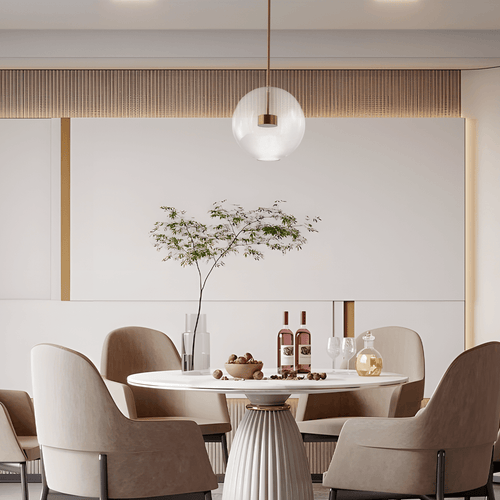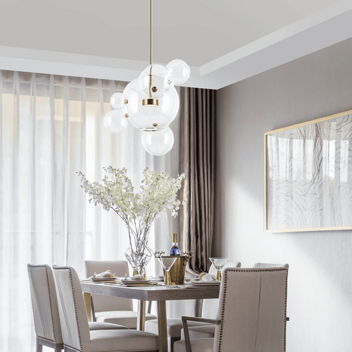 Mit ihrem modernen Design verleiht diese Pendelleuchte dem Wohnzimmer einen verspielten und zeitgenössischen Look.