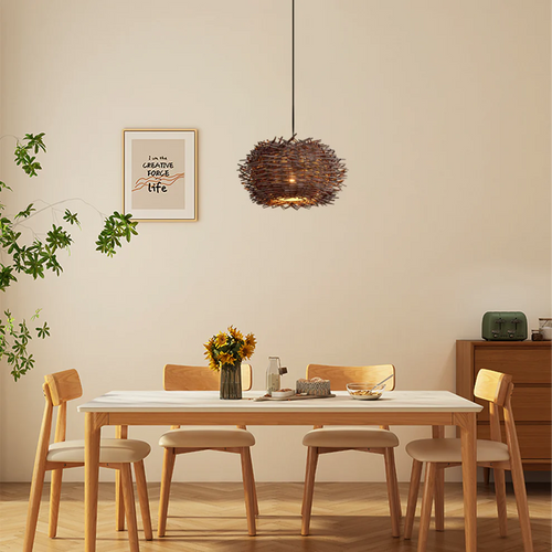 • Designstil: Diese moderne Pendelleuchte braun im natürlichen Design besteht aus vielen kugelförmig angeordneten Rattanstöcken, die ihr eine rustikale und moderne Ausstrahlung verleihen.
