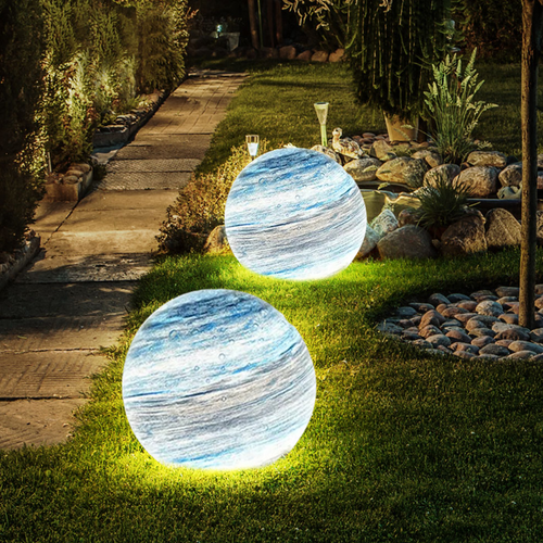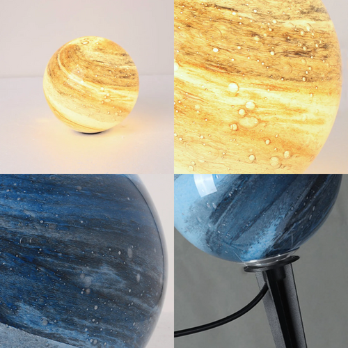 Die Leuchte präsentiert ein naturnahes Design mit einer planetenähnlichen Oberfläche, das dekorativ und ansprechend ist.