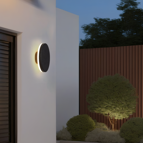 Egal ob im Wohnzimmer oder Garten: Die schlicht-elegante Wandleuchte passt in jeden Raum.