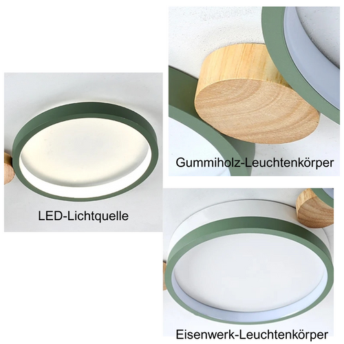 Das runde Deckenlicht überzeugt mit modernem, elegantem Design und stilvollen Holz-Akzenten, die jedem Raum eine warme Atmosphäre verleihen.