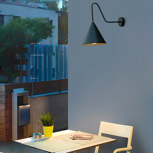 Die Kombination aus goldenen Akzenten und schwarzem Metall verleiht der Wandleuchte einen klassischen Retro-Charm.